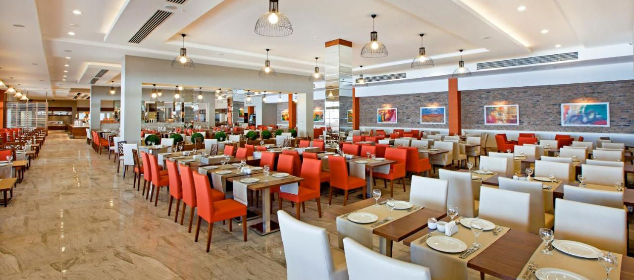 Zum gastronomischen Angebot gehören ein Buffet-Hauptrestaurant mit türkischer und internationaler Küche, ein mediterranes, ottomanisches,